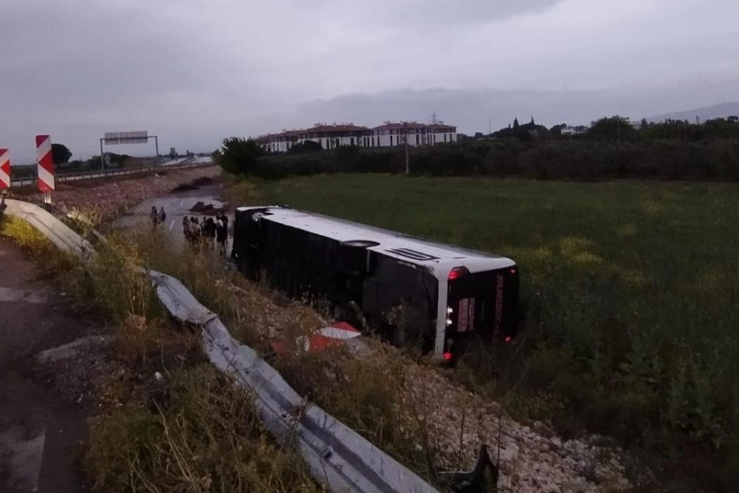 Manisa'nın Akhisar ilçesinde S.D.'nin kullandığı yolcu otobüsü, Medar Mahallesi yakınlarında kontrolden çıkarak yol kenarına devrildi.
