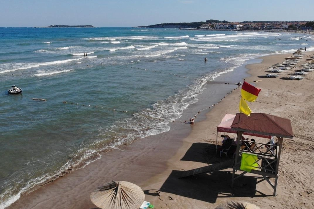 Kapızlı mevkisindeki Maliye Gençlik Kampı'nda düzenlenen etkinlik için ilçeye gelen Ankara Erkunt Mesleki Eğitim Merkezi öğrencilerinden bazıları denize girdi.