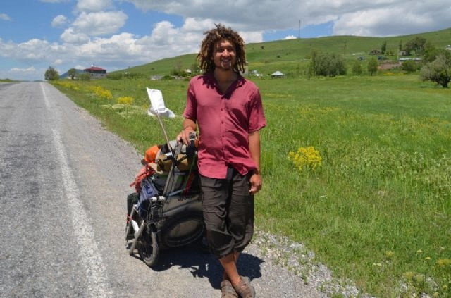 Dünya barışına dikkat çekmek için İsviçre'den Hindistan'a gitmek üzere yola çıkan genç Muş'a geldi. 21 yaşındaki Benjamin isimli genç, dünya barışı için yollara düştü. 14 ay önce İsviçre'den yola çıkan genç Muş'a ulaştı. Bir el arabasına yüklediği yaşam malzemeleriyle yürüyüşe başlayan genç, kendisini araçla götürmek isteyenlerin taleplerini geri çeviriyor. Bir gece Varto'da doğada kalan Benjamin, Bitlis'in Tatvan ilçesine doğru yürüyüşe geçti. Yürüyüşle ilgili İHA muhabirine açıklamalarda bulunan Benjamin, İsviçre'den geldiğini belirterek, "Şimdi, büyük yolculuklar yapıyorum. İsviçre'den başladığım yürüyüşü Hindistan'da sonlandıracağım. Dünya barışı için yürüyüşe başladım. İsviçre'den burası 1 yıl 2 ay sürdü. İsviçre'den Hindistan ise 2,5 yıl sürüyor. 14 aydır yoldayım ve yolculuğumu yürüyerek gerçekleştiriyorum. Buradan Tatvan, Van, İran, Afganistan ve Pakistan üzerinden Hindistan'a geçeceğim. Bu yürüyüşü sadece barışa dikkat çekmek için yapıyorum" dedi.(Nejdet Armağan / İHA)