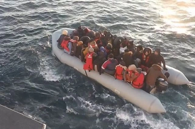 İzmir Dikili'de Sahil Güvenlik Komutanlığı ekipleri tarafından durdurulan lastik botlarda 31'i çocuk 147 düzensiz göçmen yakalandı.