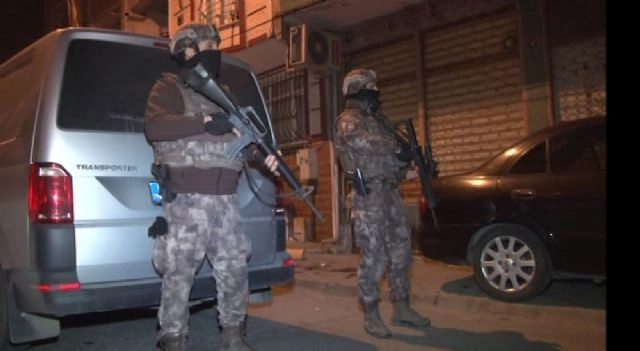İstanbul merkezli 4 ilde terör örgütü DEAŞ'a yönelik düzenlenen ve 159 şüphelinin gözaltına alındığı operasyon polis kamerasına yansıdı. Edinilen bilgiye göre, İstanbul Terörle Mücadele Şube Müdürlüğü ekipleri terör örgütü DEAŞ'ın faaliyetlerini engellemek için çalışma başlattı. Çalışma kapsamında örgüte lojistik destek sağlayan, örgüt propagandası yapan ve savaş bölgelerine gönderilmek üzere terörist temin eden hücreler tespit edilerek takibe alındı. Yapılan teknik ve fiziki takiplerin ardından İstanbul merkezli 4 ilde belirlenen 51 adrese eş zamanlı operasyon düzenlendi. Operasyon kapsamında 159 şüpheli gözaltına alınırken, adreslerde yapılan aramalarda ise 1 adet kitabın arasına saklanmış tabanca, 2 adet el telsizi ve çok sayıda örgütsel doküman ile dijital veri ele geçirildi. Operasyon anı ise polis kamerasına yansıdı.OPERASYON ANI KAMERADAPolis kamerasına yansıyan görüntülerde, özel harekat polislerinin çevre emniyeti alarak adreslere girdikleri görülüyor. TEM ekipleri baskın yapılan adreslerde ve şüphelilere ait bir araçta detaylı arama yapıyor. Arama kapsamında bir kitabın içerisinde saklanılan tabancanın çıktığı görülüyor. Adresin çeşitli yerlerinde mermiler ve terör örgütü DEAŞ'a ait sözde bayrak çıkıyor. Aramaların ardından gözaltına alınan şüpheliler emniyete götürülüyor.Gözaltına alınan şüphelilerden 26'sının Terörle Mücadele Şube Müdürlüğünde sorgusu, 133'ünün ise sınır dışı işlemleri devam ediyor.(Tugay Saday/İHA)