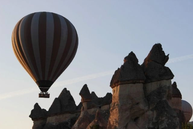 Türkiye'nin önemli turizm merkezlerinden biri olan Kapadokya'da sıcak hava balon uçuşları yeni yılın ilk gününde de iptal edildi.Meteoroloji Genel Müdürlüğü tarafından yapılan hava tahmin raporlarına göre, Nevşehir'de bugün, hafif sağanak yağış ile birlikte, rüzgarlı hava nedeniyle balon uçuşları iptal edildi. Sivil Havacılık Genel Müdürlüğü böylelikle son bir haftada hava muhalefeti nedeniyle 5 gündür sıcak hava balon turlarını iptal etmiş oldu.(Coşkun Sağlamdin/İHA)