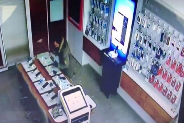 Denizli'nin Merkezefendi ilçesinde bir telefon bayisinin camını taşla kırarak içeri giren hırsız 22 saniyede alarm kablolarına bağlı 7 telefonu çaldı. Hırsız 22 saniyede iş yerine yaklaşık 30 bin TL zarar verdi.
