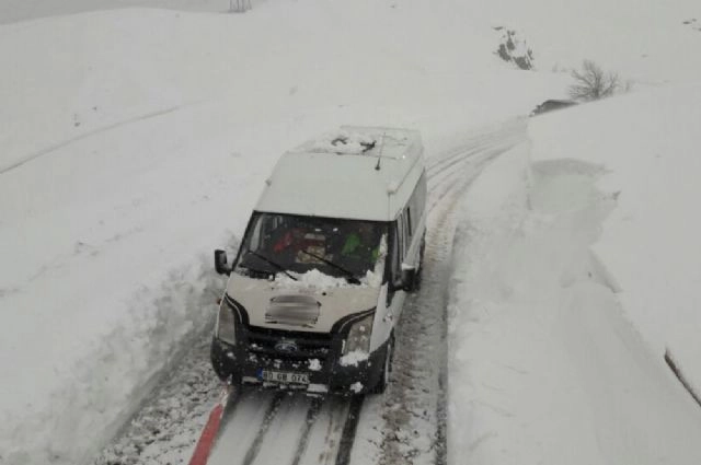 Hakkari'deki 2800 rakımlı Merga Büte Kayak Merkezi yolunda mahsur kalanlar kurtarıldı. Şehirden 12 kilometre uzaklıktaki 2800 rakamlı Merga Büte Kayak Merkezi'nde yoğun kar yağışı nedeniyle yolda mahsur kalan Gençlik Hizmetleri ve Spor İl Müdürlüğü personelleri için İl Özel İdaresi ekipleri harekete geçti. Kar yağışı, fırtına ve çığ tehlikesine rağmen bölgeye ulaşan İl Özel İdaresi ekipleri, içinde bulundukları minibüsle yolda kalan personeli kurtararak şehre ulaştırdı.İl Özel İdaresi karla mücadele ekibi, kapanan onlarca köy ve mezra yolunda ise çalışmalarını aralıksız sürdürüyor.(Feyzullah Taş / İHA)