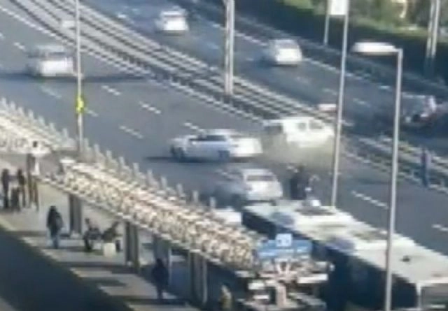 İstanbul'da E-5 karayolu Çağlayan mevkiinde 3 aracın karıştığı 2 kişinin ise yaralandığı feci kaza anı yol kamerasına yansıdı.Çağlayan mevkinde saat 15.30'da meydana gelen feci trafik kazası güvenlik kamerası tarafından saniye saniye yol kamerasına yansıdı. Görüntülerde, sağ şeritte bekleyen bir araca arkadan gelen aracın çarptığı görülüyor. 3 aracın hasra, 2 kişinin ise ağır yaralı olduğu kaza da bir motorunda kazaya karışmaktan son anda kurtulduğu kameraya yansıya görüntüler arasında.