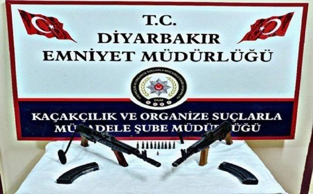 Diyarbakır merkezli 3 ilde silah kaçakçılığı yapan şahıslara yönelik düzenlenen operasyonda 7 kişi gözaltına alındı. 2 kişinin de yakalanması için çalışmaların sürdüğü belirtildi. İl Emniyet Müdürlüğü Kaçakçılık ve Organize Suçlarla Mücadele Şube Müdürlüğü ekiplerince silah ve silah mühimmatı kaçakçılığı yapan şahıs ve organizasyonlara yönelik olarak Diyarbakır merkezli olmak üzere Mardin ve Adana'da eş zamanlı operasyon düzenlendi. Operasyonda 7 şüpheli şahıs yakalanarak gözaltına alındı. 2 şüpheli şahsın da yakalanmasına çalışılıyor.Operasyon kapsamında yapılan aramalarda, 2 adet AK-47 Kaleşnikof marka uzun namlulu tüfek, 2 adet AK-47 Kaleşnikof marka tüfek şarjörü, 10 adet AK-47 Kaleşnikof marka tüfek fişeği, 1 adet ruhsatsız av tüfeği, 30 adet av tüfeği fişeği ele geçirildi.(Emrah Kızıl/İHA)