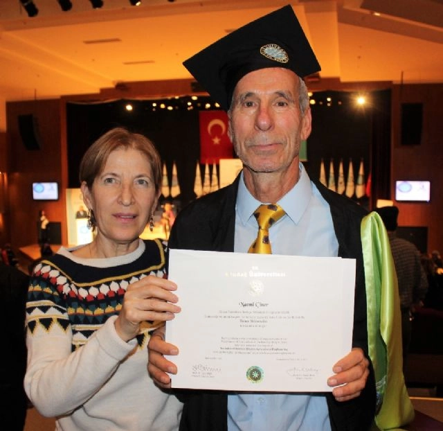 Bursa'da 75 yaşındaki inşaat mühendisi ve öğretmen, bir üniversite daha bitirerek ziraat mühendisi oldu. Eğitime gönül veren Nazmi Çınar (75), 1967 yılında eğitim enstitüsünü bitirerek öğretmen oldu. 8 yıl öğretmenlik yaptıktan sonra 1974 yılında İstanbul Teknik Üniversitesi İnşaat Fakültesini kazandı. 6 yılda okulu bitiren Çınar, inşaat mühendisi olarak mezun oldu. Mezun olduktan sonra inşaat mühendisi olarak Orta Doğu ve Afrika'daki ülkelerde 15 yıl çalıştı. Çınar, "Daha sonra ülkeme dönerek burada mühendis olarak çalıştım. 2001 yılında Amerika'ya gidip 1 yıl burada çalıştıktan sonra tekrar ülkeme dönüp emekli oldum. Doğaya ve çevreye çok saygılı bir insanım. Toprakla vakit geçirmeyi seviyorum. Bu sevgim, beni Uludağ Üniversitesi Ziraat Fakültesine yazılmaya teşvik etti. Uludağ Üniversitesi Ziraat Fakültesi Bahçe Bitkileri Bölümünü 2 yılda bitirdim. Daha sonra 6 ay da İtalya'da eğitim görerek mezun oldum. İkinci mühendislik diplomamı aldım. Çevremdeki insanlar bu yaşta okuma azmimi görünce şaşırıyor. Ben gençlere örnek olmak istedim. İnsan azmedip çalışırsa her şeyin üstesinden gelebilir" dedi.(Burak Türker / İHA)