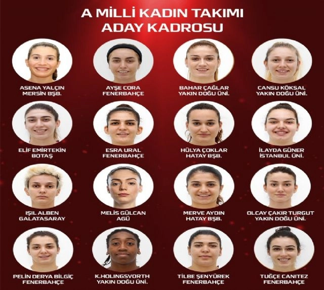 Kadınlar Avrupa Şampiyonası Elemeleri B Grubu'ndaki Beyaz Rusya ve Estonya maçları kadrosu belli oldu. 2019 yılında düzenlenecek Kadınlar Avrupa Şampiyonası'na katılma hakkını elde etmek için 10 Şubat'ta deplasmanda Beyaz Rusya ve 14 Şubat'ta da İstanbul'da Estonya ile karşılaşacak olan A Kadın Milli Basketbol Takımı, 4 Şubat tarihinde kampa girerek çalışmalarına başlayacak. Kamp için İdari ve teknik kadro ile 16 kişilik sporcu kadrosu da belli oldu. Kadroda Fenerbahçe'den 5, Yakın Doğu Üniversitesi'nden 4 oyuncu yer aldı.İdari ve teknik kadro ile 16 kişilik sporcu listesi şöyle:TEKNİK VE İDARİ KADROZeynep Gül Ene - A Kadın Milli Takım Menajeri - TBFOrhan Demirel - A Kadın Milli Takım İdarecisi - TBFEkrem Memnun - A Kadın Milli Takım Teknik Direktörü - TBFAziz Akkaya - A Kadın Milli Takım Yard. Antrenörü - Beşiktaş JKEmre Vatansever - A Kadın Milli Takım Yard. Antrenörü - Yakın Doğu ÜniversitesiSelen Erdem - A Kadın Milli Takım Yard. Antrenörüİsmet Aziz - Kondisyoner - Beşiktaş JKMetin Uzun - Doktor - Acıbadem Sağlık GrubuMerve Yıldız - Fizyoterapist - Acıbadem Sağlık GrubuSezer Karahasan - Masör - Beşiktaş JKCihan Fidan - Masör - Beşiktaş JKNeşe Ceylan - Diyetisyen - Acıbadem Sağlık GrubuBarış Yılmaz - Malzeme Sorumlusu - TBFOYUNCU LİSTESİMelis Gülcan - Abdullah Gül ÜniversitesiElif Emirtekin - BotaşEsra Ural Topuz - FenerbahçeAyşe Cora - FenerbahçePelin Derya Bilgiç - FenerbahçeTuğçe Canıtez - FenerbahçeTilbe Şenyürek - FenerbahçeIşıl Alben - GalatasarayHülya Çoklar - Hatay Büyükşehir BelediyesiMerve Aydin - Hatay Büyükşehir Belediyesiİlayda Güner - İstanbul ÜniversitesiAsena Yalçın - Mersin Büyükşehir BelediyesiOlcay Çakır Turgut - Yakın Doğu ÜniversitesiKuanitra Holingsvorth - Yakın Doğu ÜniversitesiBahar Çağlar - Yakın Doğu ÜniversitesiCansu Köksal - Yakın Doğu Üniversitesi