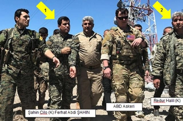 Türk Silahlı Kuvvetlerinin hava harekâtıyla vurduğu Suriye'nin kuzeyindeki YPG hedefleri, bugün ABD askerlerince ziyaret edildi.Bölgedeki kaynaklar, Türk Silahlı Kuvvetlerinin gece saatlerinde düzenlediği hava harekâtında vurduğu Suriye'nin kuzeyindeki YPG hedeflerini bugün ABD askerlerinin ziyaret ettiğine dikkat çekti. ABD'lilerle aynı karede olan kişilerin 1990 yılında terör örgütüne katılan örgütün Suriye yapılanmasının sözde silahlı kanat sorumlusu "Şahin Cilo" kod adlı Ferhat Abdi Şahin, sözde YPG Üçlü Yürütme Kurulu Üyesi ve Basın Sözcüsü Redur Halil kod adlı terörist olduğu belirtildi. Karaçok Dağı bölgesinde Türk jetleri tarafından bombalanan bölgede ABD askeri danışmanlarının incelemede bulunduğu fotoğrafların bölgede faaliyet gösteren bir uluslararası ajans tarafından servis edildiği kaydedildi. ABD'nin DEAŞ'la mücadele özel temsilcisi Brett Mc Gurk, PKK'lı Polat Can ile fotoğraf çektirdi. Teröristin YPG temsilcisi sıfatıyla Brett McGurk ile çektirdiği fotoğrafı sosyal medya hesabından paylaştığı belirtildi.DEAŞ'la mücadele kapsamında ABD'nin sadece havadan değil karadan da destek verdiği YPG içerisinde savaşan çok sayıda ABD'linin olduğunun bilindiğini vurgulayan kaynaklar, ABD Genelkurmay Başkanı Başdanışmanı Astsubay Kıdemli Başçavuş John Wayne Troxell'in, "ABD ordusu Suriye'de DSG'ye eğitim ve mühimmat yardımında bulunuyor. Bölgeden DSG'ye son derece güvenerek ayrıldım" sözlerine dikkat çekti. ABD İLE PKK ARASINDAKİ İLİŞKİ BELGELENDİYPG'nin Rakka'yı ele geçirmeye yönelik saldırısında YPG'li teröristler ile Amerikan askerlerinin beraber hareket ettikleri vurgulanırken, Abdullah Öcalan posteri önünde poz veren YPG'nin yabancı militanlarının bölgedeki etnik temizlik çalışmalarını sürdüren örgütün ABD ve diğer Batılı ülkeler ile iletişimini de sağladığı ifade edildi. Suriye'deki Rakka operasyonu sırasında Amerikan askerlerinin PYD-YPG arması taktığını hatırlatan kaynaklar, ABD'nin PYD/YPG'ye ağır silahlar verip, Afrin bölgesindeki kamplarda eğittiğinin de ortaya çıktığını vurguladı. Daha önce ABD ordusunda görev yapmış birçok eski askerin Suriye kuzeyinde PYD/YPG ile beraber hareket ettiği kaydedilirken, Halep'teki Nevruz kutlamalarına katılan Rus askerlerin komutanının da koluna terör örgütü YPG arması takarak objektiflere poz verdiğine dikkat çekildi. Çoğu Amerikalı 8 bin yabancı askerin ise PYD'ye katıldığı tespit edilirken, bu gelişmeyle ABD ile PKK arasındaki ilişkinin belgelendiği vurgulandı. DEAŞ'la savaşmak için Suriye'de YPG'ye katılan İngilizler Jamie Read ve James Hughes'ın ailelerini ziyaret etmek amacıyla ülkelerine döndüğü de hatırlatıldı. ABD'lilerle aynı karede yer alan terörist Ferhat Abdi Şahin, 1996'da Hakkâri Şemdinli'de, 1997-2003 yılları arasında Avrupa'da, 2003-2004 yıllarında Mahmur'da faaliyet gösterdi. 2005'te sözde Yürütme Kurulu Üyesi olan Şahin, 2009-2012 yıllarında HPG sözde özel kuvvetler sorumluluğunu üstlendi. 2012 yılından itibaren Suriye'de faaliyet gösteren Şahin, halen terör örgütünün silahlı kanat sorumluğunu yürütüyor.