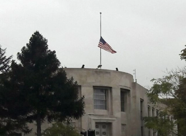 ABD'nin Teksas kentinde 26 kişinin hayatını kaybetmesine, 24 kişinin yaralanmasına yol açan silahlı saldırı nedeniyle 4 günlük ulusal yas ilan edildi. ABD'nin Ankara Büyükelçiliğinde de yas kapsamında bayraklar yarıya indirildi. ABD'nin Teksas kentinde 26 kişinin hayatını kaybetmesine, 24 kişinin yaralanmasına yol açan silahlı saldırı nedeniyle ülke genelinde 4 günlük ulusal yas ilan edildi.12 günlük Asya gezisinde olan ABD Başkanı Donald Trump'ın, ABD'de bayraklarının, tüm kamu binaları, askeri birlikler ve dış temsilciliklerde 9 Kasım'a kadar yarıya indirilmesi için bir bildiri yayınladığı bildirildi. Yas kapsamında ABD'nin Ankara Büyükelçiliğide bayrakları yarıya indirdi.(Emre Yüzügüldü /İHA)