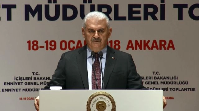 Başbakan Binali Yıldırım, ABD'den yapılan birbirini tekzip eden açıklamalara ilişkin, "Bunlar bir kafa karışıklığının ifadesi. Ancak Türkiye'nin kararlılığı açık ve nettir. Hudutlarımızın hemen güneyinde bir terör ordusu oluşturulmasına asla izin vermemiz söz konusu değildir" dedi.İl Emniyet Müdürleriyle bir araya gelen Başbakan Binali Yıldırım, programda yaptığı konuşmada, daha önce sınırda terör ordusu kuracağını açıklayan ABD'den daha sonra bunun aksi yönde yapılan açıklamaları değerlendirdi. Yıldırım, "Bunlar bir kafa karışıklığının ifadesi. Ancak Türkiye'nin kararlılığı açık ve nettir. Hudutlarımızın hemen güneyinde bir terör ordusu oluşturulmasına asla izin vermemiz söz konusu değildir. Bu konuda uluslararası hukuktan kaynaklanan ve milletimizin can ve mal güvenliğini esas alan, hudutlarımızın güvenliğini esas alan her türlü tedbir, hiç ama hiç rehavete kapılmadan hemen alınacaktır" ifadelerini kullandı.ABD'yi uyaran Yıldırım, "NATO'da müttefikimiz olan ABD'nin Suriye'deki uygulamaları ne yazık ki bu müttefiklik hukukuna terstir, yanlıştır. ABD, bölgenin geleceği konusundaki kafa karışıklığını ortadan kaldırmalı ve tavrını barıştan, Türkiye ile hukukunu düzeltmekten yana değiştirmelidir diye konuştu.