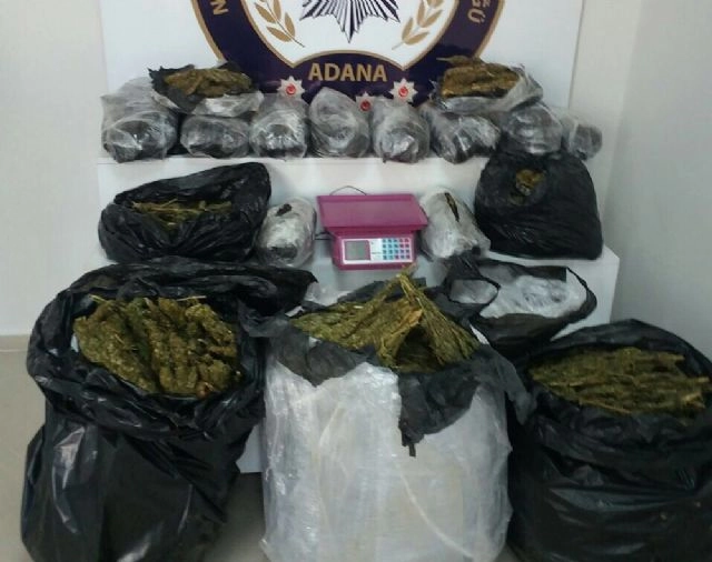 Adana'da 8 mahallede özel harekat ekipleriyle birlikte düzenlenen uyuşturucu operasyonunda 62 kilo 480 gram esrar, 1'i otomatik 3 tüfek ele geçirildi, gözaltına alınan 10 şüpheliden 7'si tutuklandı.