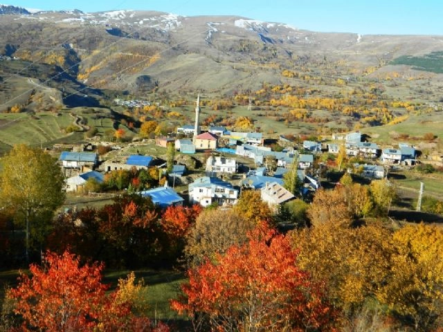 Ardahan'ın Posof ilçesinde, yüksek kesimlerde kar, alçak kesimlerde sonbaharın sarı ve yeşilin tonları renk cümbüşü sunuyor.