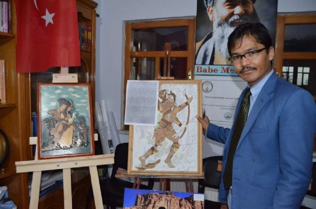 Afgan uyruklu Golmohammad Jafari, küçük ahşap parçaları ve ağaç kabuklarından yaptığı tabloları ile dikkat çekiyor. İran, Hindistan ve Afganistan'da yaygın olan 'Muarrak' sanatını temsil eden eserlerinden kazandığı parayı ise Afgan sanatçı böbrek hastalığının tedavisinde kullanıyor.