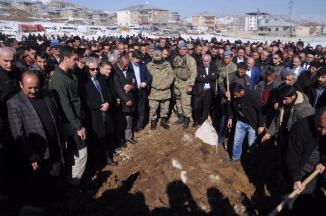 Hakkari'nin Yüksekova ilçesinde dün akşam evinin önünde silahlı saldırıya uğrayan AK Parti Esendere Belde Başkanı Tayfun Ayhan'ın 37 yaşındaki ağabeyi Murat Ayhan, törenle son yolculuğuna uğurlandı.Dün akşam saatlerinde AK Parti Esendere Belde Başkanı Tayfun Ayhan ile ağabeyi Murat Ayhan, evlerine giderken kimliği belirsiz kişi veya kişilerin silahlı saldırısına uğradı. Saldırıda ağır yaralanan Murat Ayhan, yakınları tarafından Yüksekova Devlet Hastanesine kaldırılmış, burada yapılan ilk müdahalesinin ardından Hakkâri'ye sevk edilmişti. Ağır yaralanan Ayhan, tüm müdahalelere rağmen kurtarılamadı.İstanbul'da olan ailesi sabah saatlerinde uçakla Yüksekova Selahaddin Eyyübi Havaalanına indikten sonra, Murat Ayhan'ın cenazesi Yüksekova Devlet Hastanesi morgundan alınarak Esentepe Mahallesinde bulunan Akarsu Camisine getirildi. Burada yapılan törenin ardından Ayhan'ın cenazesi Akalan Mezarlığında son solculuğuna uğurlandı.Mezarlıkta sinir krizleri geçiren aile fertleri, vatandaşlar tarafından sakinleştirilirken, kardeşleri ise "iki kalleşe kurban oldu" diye sitem ettiler.Cenaze törenine, AK Parti Genel Başkan Yardımcısı Öznur Çalık, Cumhurbaşkanı Başdanışmanı Gülşen Orhan, AK Parti milletvekilleri Zeki Aygün ve Kerim Yıldız, Hakkari Valisi Cüneyit Orhan Toprak, Yüksekova Kaymakamı Mahmut Kaşıkçı, Yüksekova 3. Tümen Komutanı Tuğgeneral Metin Tokel, İl Emniyet Müdürü Süleyman Suvat Dilberoğlu, kurum amirleri ve çok sayıda vatandaş katıldı. Ayhan'ın cenazesi toprağa verildikten sonra heyet Akarsu Camisinde aileye başsağlığı diledi. Burada açıklamada bulunan AK Parti Genel Başkan Yardımcısı Öznur Çalık, "Dün hain terör örgütünün yapmış olduğu kalleşçe saldırıda Esendere Belde Başkanımızın abisini şehit vermiş vaziyetteyiz. Bu kalleş saldırıyı hepimiz lanetliyoruz. Burada görmüş olduğumuz o yürekli Hakkari ve Yüksekovalı kardeşlerimiz tek yürek olmuş vaziyette; bu vatan için, bu bayrak için her biri tek tek can vermeye hazırdır. Bilsin ki terör örgütleriyle mücadelemiz sonuna kadar devam edecek. Biz bu vatan için, bu bayrak için canımızı vermeye her zaman hazırız. Kalleş terör örgütüne karşı sonuna kadar mücadele edeceğiz. En önemlisi bu mücadeleyi yaparken valimiz, komutanlarımız, emniyetimiz, bütün güçlerimizle birlikte devletimiz ve milletimiz kararlıdır. Vatandaşımızın zor ve dar gününde devlet olarak yanındayız. Ben bu kararlı duruş için bütün Hakkarili kardeşlerime canı gönülden teşekkür ediyorum. Onların bu yürekli duruşu bizleri güçlendiriyor. Bilsinler ki terör örgütlerinden bunların hesabı sorulacak ve kanları yerde kalmayacaktır. Sonuna kadar terör örgütlerine karşı mücadele edeceğiz. Kıymetli başkanım burada ağabeyi yanındaydı. Terör örgütü hayatını kaybeden Murat Ayhan'ın yanına yanaşıp tekrardan silahla bir kez daha kurşunluyorlar, kalleşlikleri ve alçaklıkları her halinden belli olan terör örgütlerine karşı bu dik duruş, başkanımın dik duruşu gibidir" dedi.AK Parti Esendere Belde Başkanı Tayfun Ahyan ise "Onlarca kurşun sıktıktan sonra gelip kafasına sıkıyorlar, hem de kardeşinin yanında sıkıyorlar. Yere düşüyor, tekrar gelip kafasına sıkıyorlar. Vatan sağ olsun" diye konuştu.(Erkan Çapraz - Ömer Oğuz/İHA)