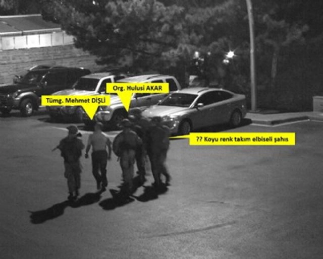 Genelkurmay Başkanı Hulusi Akar'ın darbeciler tarafından helikopterle Akıncı Üssü'ne götürülmesine ilişkin kamera kayıtlarından elde edilen görüntülerde kimliği tespit edilemeyen ve 'koyu renk takım elbiseli şahıs' olarak nitelendirilen kişi dikkat çekti.