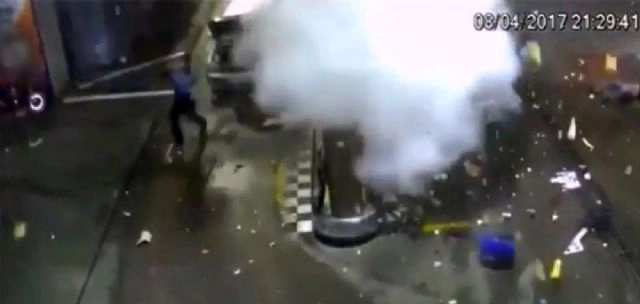 Brezilya'nın Rio de Janeiro kentinde bir akaryakıt istasyonunda facia yaşandı.Otogaz alan otomobil, bilinmeyen bir sebeple bir anda patladı. Olayda aracın hemen yanı başında duran sürücü öldü, 3 kişi de yaralandı. Otomobilin de enkaza döndüğü olay, saniye saniye istasyonun güvenlik kamerasına yansıdı.
