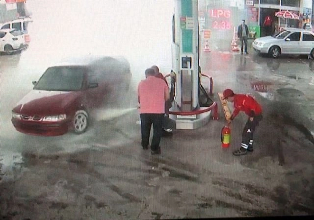 Konya'da akaryakıt istasyonunda önce LPG ardından da benzin doldurulan otomobilde parlama meydana geldi. Kendisini can havliyle dışarıya atan sürücü yüzünden yaralanırken, görevlilerin parlama sonucu çıkan yangına zamanında müdahalesiyle faciadan dönüldü.