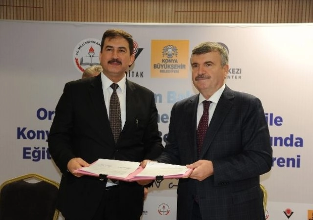 Konya Bilim Merkezi'nin tüm Türkiye'deki fen lisesi öğrenci ve öğretmenleriyle ortak çalışma yapması konusundaki protokol, Konya Büyükşehir Belediye Başkanı Tahir Akyürek ile Milli Eğitim Bakanlığı Müsteşar Yardımcısı Muhterem Kurt arasında imzalandı.
