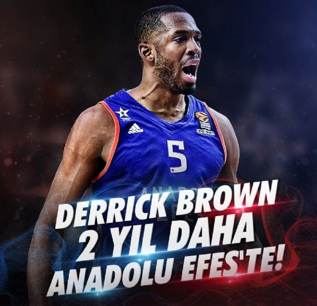 Anadolu Efes, geçen sezon kadrosuna kattığı Derrick Brown ile sözleşme yeniledi. Bu sezon Euroleague'de ve Spor Toto Basketbol Süper Ligi'nde hedeflediği noktalara gelemeyen Anadolu Efes, yeni sezon hazırlıklarına iç transfer ile devam ediyor. Lacivert-beyazlılar Amerikalı oyuncusu Derrick Brown ile sözleşme imzaladı. Lacivert-beyazlı kulübün resmi internet sitesinden yapılan açıklamada tecrübeli oyuncunun 2 yıl daha Anadolu Efes'te mücadele edeceği belirtildi.Derrick Brown, Spor Toto Basketbol Ligi'nde 35 maçta 25.31 dakika süre alarak 11.7 sayı, 5.0 ribaund ve 1.8 asist ortalamaları ile mücadele etti. THY Euroleague'de de 35 karşılaşmada görev yapan Brown, maç başına 29.17 dakika süre alarak 12.3 sayı, 5.5 ribaunt ve 2.2 asist ortalamaları ile mücadele etti.Deneyimli oyuncu ayrıca bu sezon THY Euroleague'in 10. haftasında deplasmandaki Maccabi Fox Tel Aviv ve 21. haftada Kızılyıldız deplasmanında gösterdiği performanslar ile bu iki haftanın MVP'si olmuştu.