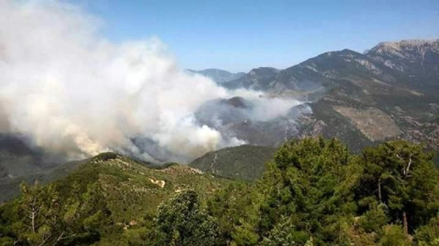 Mersin'in Anamur ilçesinde sabah saatlerinde çıkan orman yangınını söndürme çalışmaları sürüyor.Alınan bilgiye göre, ilçenin Yukarı Kükür Mahallesi civarındaki kızılçam ormanı ve makilik alanda sabah 07.30 sıralarında henüz bilinmeyen bir nedenle yangın çıktı. Fangını fark eden mahalle sakinlerinin ihbarı üzerine, bölgeye Orman İşletme Müdürlüğü ve Mersin Büyükşehir Belediyesi İtfaiyesi ekipleri sevk edildi. Ekipler, rüzgar nedeniyle hızla yayılan alevleri kontrol altına almakta yetersiz kalınca, çevre il ve ilçelerdeki orman işletme müdürlüklerinden çok sayıda arazöz ile iş makinesi bölgeye gönderildi.Rüzgarın da etkisiyle büyüyen yangın, yerleşim yerlerini ve tarım arazilerini tehdit ederken, ekiplerin söndürme çalışmalarının devam ettiği bildirildi.(Hasan Çetin/İHA)