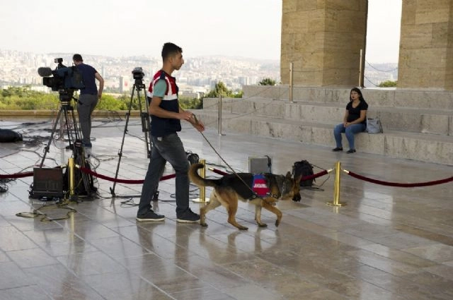 30 Ağustos Zafer Bayramı etkinlikleri kapsamında devlet erkanının ziyaret edeceği Anıtkabir'de yoğun güvenlik önlemleri alındı.Anıtkabir çevresinde sabah saatlerinden itibaren polis ekipleri yoğun güvenlik önlemleri alırken Anıtkabir'deki kulelere kesin nişancılar yerleştirildi. Devlet erkanının katılacağı tören öncesi Atatürk'ün mozolesi ve Misak-ı Milli Kulesi'nde bomba uzmanı dedektör köpekler arama yaptı. (Ömer Çetin/İHA)