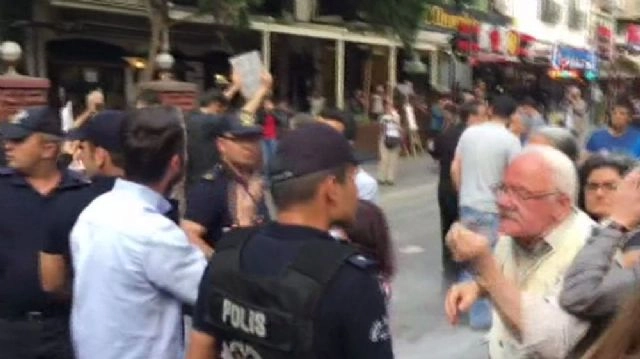 Başkent'te polis ekipleri, tutuklu olan Nuriye Gülmen ve Semih Özakça için izinsiz eylem yapan gruba biber gazıyla müdahale etti. Yüksel Caddesi üzerinde toplanan bir grup, Nuriye Gülmen ve Semih Özakça'nın serbest bırakılması için izinsiz eylem yapmak istedi. Sloganlar atan gruba polis ekipleri, yaptıkları eylemin kanunsuz olduğunu belirterek alanı boşaltmaları yönünde uyarılarda bulundu. Polisin uyarılarını dikkate almayan gruba çevik kuvvet ekipleri biber gazıyla müdahale etti. Müdahalenin ardından grup bölgeden uzaklaştı. (İlker Turak - Ömer Çetin / İHA)