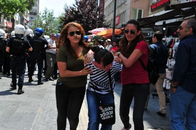 Başkent'te KHK ile meslekten ihraç edildikten sonra tutuklanan Nuriye Gülmen ve Semih Özakça'nın serbest bırakılması için izinsiz eylem yapan gruba polis müdahale etti. Olaylarda 4 kişi gözaltına alındı. Edinilen bilgiye göre, Başkent'te Karanfil Caddesi üzeride toplanan bir grup eylemci, KHK ile meslekten ihraç edildikten sonra bir süredir tutuklu bulunan Nuriye Gülmen ve Semih Özakça'nın serbest bırakılması için eylem yapmak istedi. Cadde üzerinde toplanan gruba polis ekipleri, yaptıkları eylemin kanunsuz olduğu, eyleme son vermemeleri durumunda müdahale edileceği yönünde uyarılarda bulundu. Uyarıları dikkate almayan gruba çevik kuvvet ekipleri tarafından müdahale edildi. Müdahaleyle bölgeden uzaklaştırılan grup, tekrar aynı noktaya gelince polis ekipleri gözaltı işlemlerine başladı. Olaylarda 4 kişi gözaltına alındı. (Uğur Kan Yüksek - Ömer Çetin - Mustafa Apaydın/İHA)