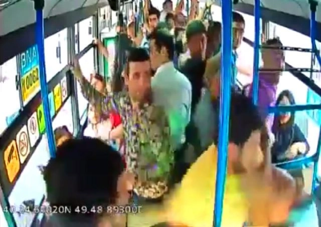 Azerbaycan'ın başkenti Bakü'de bir şahıs, annesine kızan belediye otobüsü şoförüne saldırdı.Bakü'de belediye otobüsüne ön kapıdan binmeyen kadına kızan şoför, kadının oğlu tarafından darp edildi. O anlarsa anbean otobüsün güvenlik kameralarınca kaydedildi. Olay araya girenlerce büyümeden sonlandırılırken, yüzünden yaralanan şoför hastaneye başvurdu. Saldırgansa gözaltına alındı.