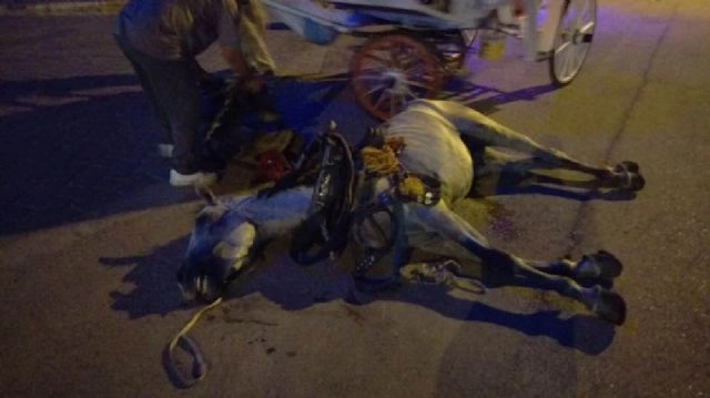 Antalya'da, fayton turu sırasında aşırı sıcak ve susuzluktan öldüğü ileri sürülen at, cadde ortasına terk edildi. Edinilen bilgiye göre, dün gece saat 21.30 sıralarında Muratpaşa ilçesi Gençlik Mahallesi Fevzi Çakmak Caddesi'nde kimliği henüz belirlenemeyen faytoncu, aldığı turistlerle fayton turuna çıktı. İddiaya göre fayton turunda at bir anda yere yığıldı. Çevredekiler yardım etmek için koşarken faytona bağlı at birkaç dakika içerisinde öldü. Faytoncu ise ölen atın koşum takımlarını çözerek başka bir faytoncu arkadaşını yardım için çağırdı. Durumu gören vatandaşlar, ata işkence edildiğini iddia ederek tepki gösterdi. Bu sırada faytoncunun ise arkadaşının faytonuna binerek olay yerinden uzaklaştığı iddia edildi. İhbar üzerine gelen polis ekipleri faytoncuyu yakalamak için çalışma başlattı. Antalya Büyükşehir Belediyesi Zabıta Müdürlüğü ekipleri ise atın ayaklarını halatla bağlandıktan sonra kepçe yardımıyla kamyonete yükledi.