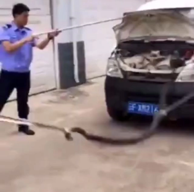 Çin'de bir adamın aracından tam 3 metrelik kral kobra cinsi bir yılan çıktı. Görevliler, özel aparatlarla, uzun süren bir çalışmanın sonunda dev yılanı aracın ön kısmından çıkarmayı başardı. Dev yılan, ardından bir torbaya konularak götürüldü.Doğadaki en büyük zehirli yılan olan kral kobranın adamın aracına nereden ve nasıl girdiğiyse bilinmiyor.