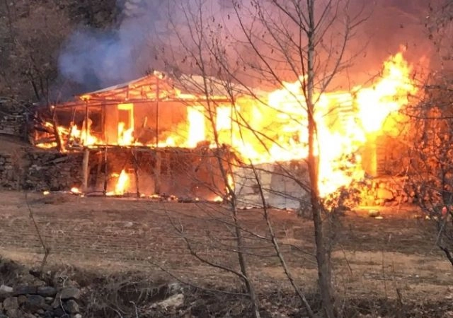 ARTVİN (İHA) â€" Artvin'de bir ev çıkan yangında kül oldu.Edinilen bilgiye göre, Şavşat ilçesi yolu üzerindeki Kaparya mevkiinde Mikayil Yiğit ve Harun Avcı ya ait bir evde, arılar için hazırladıkları mumu kaynatırken mumun dökülmesi sonucu yangın çıktı. Kısa sürede büyüyen alevler tüm evi etkisi altına aldı. Çevredekilerin müdahalesine rağmen söndürülemeyen yangın sonucu ahşap ev yanarak kullanılamaz hale geldi.Olayla ilgili soruşturma başlatıldı.