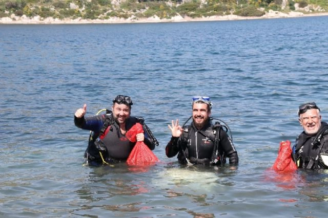 Bodrum Belediyesi tarafından düzenlenen deniz dibi temizliği faaliyetine destek veren ünlü sanatçı Ata Demirer, dalgıç kıyafeti giyerek deniz dibinden çöp topladı.