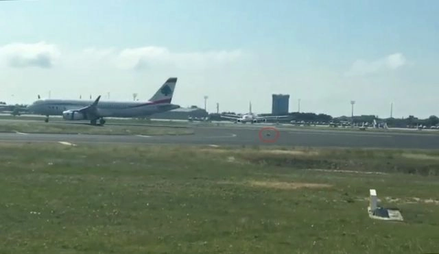 Atatürk Havalimanı'nı birbirine katan köpeğin görüntüleri ortaya çıktı. Atatürk Havalimanı pistine girip hareketli dakikalarının yaşanmasına neden olan köpeğin görüntüsü ortaya çıktı. Atatürk Havalimanı'nda dün piste giren bir köpek nedeniyle 4 uçak pisti pas geçmek zorunda kalmıştı. Havalimanını birbirine katan köpek bir uçak yolcusu tarafından görüntülendi. Görüntülerde, köpek uçaklara aldırış etmeden piste dolaştığı görülüyor.(Tuncer Cengiz - Ferhat Yasak / İHA)