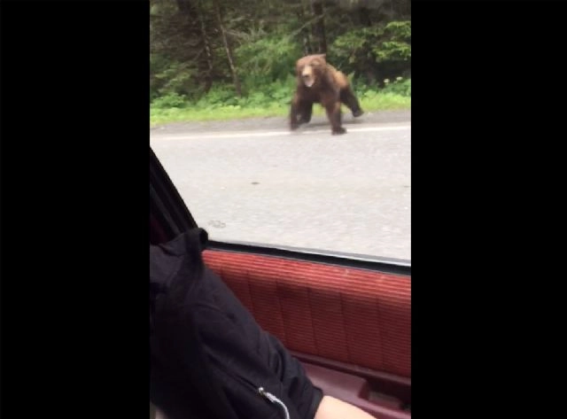 Ayı kamyonete böyle saldırdı.Alaska'da ormanlık yolda bir ayı gören şahıs, hemen cep telefonuyla o anları kayda aldı. Aracı fark edince yol kenarına gizlenen ayı ise, ardından hızla saldırıya geçti. Kamyonette kısa süreli bir panik yaşanırken, sürücü gaza bastı ve olay yerinden uzaklaştı. Araca yetişemeyen öfkeli ayı da arakadan bakmakla yetindi.