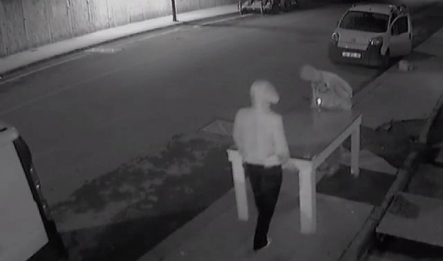 İstanbul Esenyurt'ta şarküteri dükkanına giren hırsızlar 15 bin lira değerinde sigara ve alkol çalarak kaçtı, yaklaşık 5 dakika sonra şarküteriye ikinci kez gelen hırsızlar bu sefer güvenlik kamera kayıt cihazını alarak kayıplara karıştı. Hırsızlık anları ise başka bir iş yerinin güvenlik kamerası tarafından anbean kaydedildi. Olay 20 Mart Perşembe günü Esenyurt'ta bir şarküteri dükkanında meydana geldi. Gece saat 02.30 sıralarında araçlarıyla şarküteri dükkanına gelen 3 hırsız yaklaşık 15 bin lira değerinde alkol ve sigara çaldı. 5 dakika sonra aynı dükkana geri dönen hırsızlar bu sefer kamera kayıt cihazını alarak olay yerinden kaçtı. Hırsızlık anı başka bir dükkanın güvenlik kameraları tarafından saniye saniye kaydedildi.BİRBİRLERİNİN ÜZERİNE ÇIKTILARAraçlarıyla dükkanın önüne gelen hırsızlar yüzlerini kapüşonları ve maskeleriyle gizledi. Hırsızlar ilk olarak birbirlerinin üzerine çıkarak şarküteriye ait güvenlik kamerasını etkisiz hale getirdi. Daha sonra çalan alarmı susturmak isteyen hırsızlar kaldırımda duran kolileri üst üste koyarak alarma yetişmeye çalıştı. Bu girişimlerinde başarılı olamayan hırsızlar bu sefer bir lokantaya ait masayı alarak alarmın altına taşıdı. Masanın üzerine çıkan hırsızlar, ardından birbirlerinin üzerine çıkarak çalan alarmın kablolarını söküp susturdu. Ellerindeki aletlerle kepengi kıran hırsılar içeri girerek yaklaşık 15 bin lira değerindeki alkol ve sigara çaldı. Çaldıkları malları araçlarına taşıyan 3 hırsız olay yerinden kaçtı.5 DAKİKA SONRA GERİ DÖNDÜLERAraçlarıyla olay yerinden kaçan 3 hırsız yaklaşık 5 dakika sonra girdikleri şarküteri dükkanına geri döndü. Hırsızlardan biri araçtan inerek dükkana girdi. Şarküteriye giren hırsız güvenlik kameralarına ait kayıt cihazını alarak olay yerinden tekrar kaçtı.HIRSIZLAR KAMERADABaşka bir iş yerinin güvenlik kameralarına yansıyan görüntülerde hırsızlar araçlarıyla gelerek şarküteri alarm ve kameralarını etkisiz hale getiriyor. Daha sonra kepengi kırarak alkol ve sigara çalıp araçlarıyla kaçıyor. 5 dakika sonra geri dönen hırsızlar dükkana ait kamera kayıt cihazını alıp gözden kayboluyor.(Alper Korkmaz/İHA)