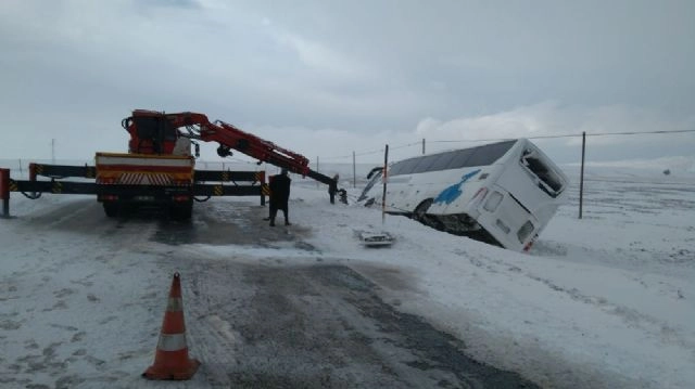 Kayseri-Malatya karayolu üzerinde dün gece saatlerinde üst üste 2 yolcu otobüsü devrildi. Devrilen otobüslerde bulunan 22 kişi yaralandı. Edinilen bilgiye göre Pınarbaşı - Gürün yolu üzerinde meydana gelen ilk kazada H.M. yönetimindeki Siirt - İstanbul seferini yapan 34 FM 8283 plakalı yolcu otobüsü, tipi nedeniyle sürücüsünün hakimiyetini kaybetmesi sonucu şarampole devrildi. Kazanın ardından bölgeye çok sayıda jandarma, 112 ve kurtarma ekibi sevk edildi. Kazada yaralanan 8 kişi, hastanelere kaldırılarak tedavi altına alındı. İlk kazadan birkaç saat sonra Van Antalya seferini yapan N.Y. idaresindeki 34 FA 7538 plakalı yolcu otobüsü tipi nedeniyle yan yattı. Kazanın ardından bölgeye çok sayıda jandarma, 112 ve kurtarma ekibi sevk edildi. Kazada yaralanan 14 kişi, kentteki hastanelere kaldırılarak tedavi altına alındı. Her iki kazayla ilgili soruşturma başlatıldı. (Turan Bulut - Ali Göç / İHA)