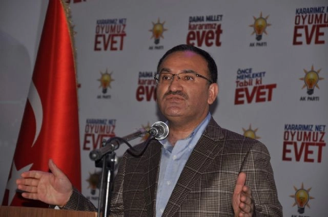 Adalet Bakanı Bekir Bozdağ, Almanya'daki toplantısının iptal edilmesiyle ilgili, "Belediyenin aldığı bu iptal kararı belediyenin kendi iradesiyle aldığı bir karar değil, belediyeye aldırılmış bir karardır. Bu belediyeyi aşan bir durumdur. Federal hükümetin baskısı veya Alman gizli istihbaratının baskısı olabilir. Ama biz biliyoruz ki bu karar Karlsuhe Belediyesi'nin kararı asla değildir" dedi. Adalet Bakanı Bekir Bozdağ, referandum kapsamında Ankara Keçiören'de şehit aileleri ve esnaf ziyaretlerinde bulundu. Bozdağ, 15 Temmuz hain darbe girişiminde şehit düşen Cengiz Polat'ın ailesini ziyaret etti. Keçiören'de vatandaşlarla bir araya gelen Bakan Bozdağ, esnafla bir araya geldi. Bakan Bozdağ'a Keçiören Belediye Başkanı Mustafa Ak ve AK Parti Keçiören İlçe Teşkilat Başkanı Zafer Çoktan eşlik etti.Bakan Bozdağ, Yozgatlı Dernekler Federasyonu tarafından düzenlenen toplantıda 'Cumhurbaşkanlığı Hükümet Sistemi'ni anlattı. "15 Temmuz 2016 hain ve kanlı darbe girişimini yansıtan bir yansıyı hep beraber izledik. Rabbim bir daha 15 temmuzları bu millete, bu devlete yaşatmasın inşallah. Şehitlerimize bir kez daha Allah'tan rahmet diliyorum. Gazilerimize, sıhhatli uzun ömürler diliyorum" diyen Bozdağ, 15 Temmuz'dan sonra Türkiye'de yeni bir sayfa açmak gerektiğini vurgulayarak, "Türkiye hükümet sistemi tartışmaları uzun zaman yapıldı. Yaklaşık 93 yıldır, belki de 150-200 yıldır Türkiye'de yaşanan tartışmaların başında Türkiye'nin nasıl bir hükümet sistemiyle yönetilmesi tartışması gelmektedir. Bir parlamenter sistemi bir dönem içinde tercih ettik, onunla ülkemiz yönetildi, yönetiliyor. Ancak, 15 Temmuz 2016 darbe teşebbüsünden sonra Türkiye'de yeni bir sayfayı açma zarureti ortaya çıkmıştır. MHP'nin Sayın Genel Başkanı Dr. Devlet Bahçeli de yaşanan bu gelişmeler üzerine Türkiye'nin önünü açacak yeni bir kapıyı aralamıştır. Neden Türkiye sistemi değiştirmek zorundadır. Dönüp baktığınız zaman milletimizin ve devletimizin bekası, varlığı, istikrarı, istikrarı ve istikbali için Türkiye'nin bu sistem değişikliğini yapma ihtiyacı var" diye konuştu. "DÜNYADA 10 CİVARINDA TERÖR ÖRGÜTÜYLE EŞ ZAMANLI MÜCADELE YAPAN TÜRKİYE'DEN BAŞKA İKİNCİ BİR ÜLKE YOK"Türkiye'nin dört bir yanının yangın yeri olduğunu kaydeden Bozdağ, "Suriye 2011'den beri savaşta, Irak 2003'ten beri iç çatışmayla boğuşuyor, Türkiye Irak'tan ve Suriye'den gelen 3 milyon civarında göçmenle uğraşıyor, onları ağırlıyoruz ülkemizde. Öte yandan PKK terör örgütü, DEAŞ terör örgütü, DHKP-C terör örgütü ve FETÖ dahil 10 ayrı terör örgütüyle bugün Türkiye eş zamanlı mücadele etmek durumunda. Dünyada 10 civarında terör örgütüyle eş zamanlı mücadele yapan Türkiye'den başka ikinci bir ülke yoktur. Terör tehdidi altında olan başka da bir ülkede yoktur" ifadelerini kullandı."TÜRKİYE GÜÇLÜ OLURSA ÖNÜNÜ KESEMEYİZ DİYORLAR"Türkiye'nin zayıf olmasını isteyen iç ve dış güçlere dikkat çeken Bozdağ, "Türkiye'nin zayıf olmasını, istikrarsız olmasını, güçsüz olmasını, bu coğrafya da olup biten her şeye sağır ve kör olmasını isteyen bir dolu dünya var, bir dolu güç var. Diyorlar ki; 'Eğer ki Türkiye güçlü olursa istikrar olursa, refah olursa, huzur olursa, barış ve güven olursa, Türkiye'nin önünü biz kesemeyiz. Türkiye istikrarsız kalsın, Türkiye zayıf iktidarlarla yönetilsin, Türkiye kuruşa muhtaç olsun, IMF'nin, AB'nin, Avrupa Konseyi'nin kapısında aciz ve biçare noktada dursun.' Onun için ne lazım? Zayıf hükümetler lazım, istikrarsızlık lazım, kargaşa, kriz, kaos, terör, şiddet lazım. Hepsini bol bol Türkiye'nin üzerine boca ediyorlar. Ama hamdolsun 3 Kasım 2002'den bu yana Türkiye'de hep istikrar var. Siyasi istikrar var, güçlü iktidar var, parlamentoda bizi çoğunluk yaptınız, hükümet ettiniz, Cumhurbaşkanını bizim liderimizden seçtiniz" şeklinde konuştu. "TAYYİP BEYİ TÜRKİYE'NİN SİYASETİNDEN ÇEKTİĞİNİZDE SİYASİ İSTİKRAR FALAN TÜRKİYE'DE KALMAZ"AK Parti'nin neden sistem değişikliği istediğini anlatan Bakan Bozdağ, "Tayyip Erdoğan, AK Parti geçici, fani. Millet 'Hayır' dediğinde bitecek, millet siyaseten başka bir noktaya getirdiğinde başka bir şey olacak. Ya da emr-i hak vaki olduğunda gidilecek. Onun için diyorlar ki 'Tayyip Erdoğan, şuanda görevinin başında, bir dönem daha millet seçerse bir dönemi var. Ama ondan sonra Tayyip Erdoğan'sız bir Türkiye gelecek.' Tayyip beyi Türkiye'nin siyasetinden çektiğinizde siyasi istikrar falan Türkiye'de kalmaz. Çünkü bizim mevcut parlamenter sistem doğrudan siyasi istikrar ve güçlü iktidar doğurmuyor. Atatürk ile bir istikrar var, güçlü iktidar var. Menderes ile istikrar, güçlü iktidar var. Turgut Özal ile istikrar var, güçlü iktidar var. Tayyip Erdoğan ile istikrar, güçlü iktidar var. Buna baktığımızda mevcut sistem siyasi istikrarı ancak güçlü liderler sayesinde kurabiliyor""BELEDİYEYE ALDIRILMIŞ BİR KARARDIR"Bakan Bozdağ, Almanya'daki toplantısının iptal edilmesiyle ilgili şöyle konuştu:"Ben Avrupa'daydım. Avrupa Konseyi Bakanlar Komitesinde konuştum Genel Sekreterle, AİHM Başkanı ile görüştüm. Almanya'da Türk toplumuyla bir araya gelecektik. Salon kiralanmış, pazartesi günü oradaki Türk toplumu belediyeye bildirimde bulunmuş. Adres bildirilmiş, kim gelecek onu bildirmiş, kaç kişi gelecek onu bildirmiş, çarşamba günü belediye yetkilileri, polis ve organizasyon heyeti adına bir vatandaşımız ortak tutanak imzalıyorlar. 500 kişi gelecek, fazla gelirse şöyle yapacağız, program şu kadar sürecek vesaire, beraber imza altına alıyorlar. Polis bakan nereden girecek hangi kapıdan girecek onun dahi tespitini yapıyor. Buradan gelecek buradan girecek diye.