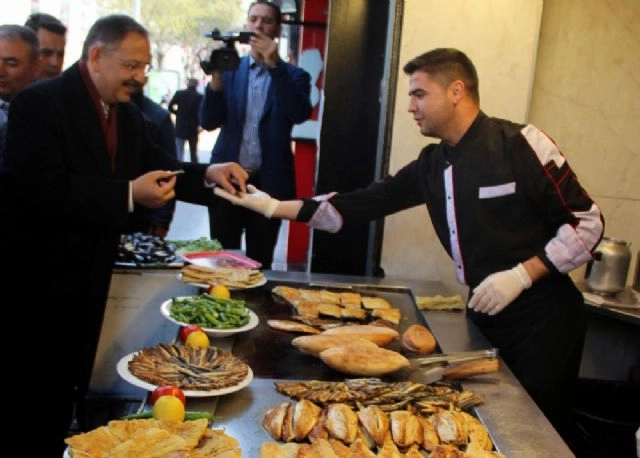 Kayseri'de bulunan Çevre ve Şehircilik Bakanı Mehmet Özhaseki, esnaf ziyareti yaptı, ikram edilen balıktan tattı.