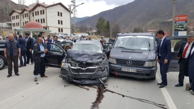 Milli Savunma Bakanı Fikri Işık'ın Gümüşhane ziyareti sırasında konvoyunda meydana gelen trafik kazasında ilk belirlemeler göre 5 kişi yaralandı.