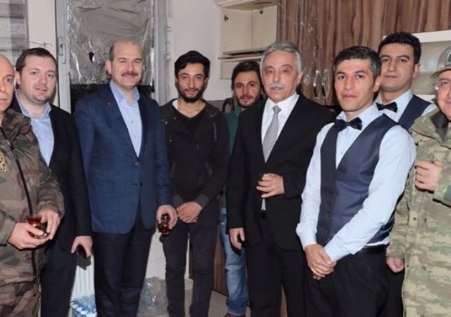 İçişleri Bakanı Süleyman Soylu, ziyaret ettiği Yüksekova İlçe Emniyet Müdürlüğü'nde telsiz anonsu ile polislere seslenerek yeni yıllarını kutladı.Yılbaşını Hakkari'de geçirmek için bölgeye gelen İçişleri Bakanı Süleyman Soylu, beraberinde Hakkari Valisi Cüneyit Orhan Toprak ile birlikte Yüksekova İlçe Emniyet Müdürlüğü'nü ziyaret ederek telsiz anonsu ile polislere seslendi. Hakkari Emniyet Müdürü S. Suvat Dilberoğlu tarafından karşılanan Bakan Soylu ve Vali Toprak burada görevli polislerin yeni yılını kutladılar. Bakan Soylu daha sonra telsizi eline alarak polislere seslendi. Bakan Soylu konuşmasında, "İki ay önce şehit verdiğimiz Durak Jandarma Karakolunda idik. Orada kahraman jandarmalarımızla beraber yeni yıl mesajı ortaya koyduk. Şimdi de kahraman Türk polisine yeni mesaj veriyoruz. Bu milletin her bir ferdi bilesiniz ki ortaya koyduğunuz fedekarlığa minnettardır ve duacıdır. Anneleriniz babalarınız sizin için nasıl dua ediyorsa hangi şartlarda hangi koşullarda bugün görev yaptığınızı bilerek milletimiz size dua ediyor. Sizlerle birlikte ülkemiz güçlüdür, sizlerle birlikte ülkemiz kuvvetlidir, sizlerle birlikte milletimiz huzur ve güven içindedir. 2017 yılı hep birlikte daha huzurlu, daha güvenli ve milletimizin müreffeh güven içerisinde olduğu bir yıl olacaktır. Allah yardımcımız olsun. Allah kem gözlerden ve şer bakışlardan sizi muhafaza eylesin. Her bir taneniz bizim için önemlisin ve kıymetlisiniz. Kendinize dikkat edeceksiniz. Vatandaşımızın huzur ve güvenine de dikkat edeceksiniz buna inanıyorum. Mesai arkadaşlarımın gecenin bu saatinde sabaha kadar milletin huzuru için ayakta durduğunu ve büyük bir emmiyetle ülkemi selamete götürdükleri bilmiyorum. Terörle mücadele ediyorsunuz, asayişle mücadele ediyorsunuz, trafikle mücadele ediyorsunuz ve bütün bunları hem de büyük bir gayretle ve büyük bir anlayışla kahramanlıkla gerçekleştiriyorsunuz. Allah asaletinizi daim etsin, Allah sizinle birlikte olsun ve Allah milletimizin duasını hiçbir saniye sizin üzerinizden eksik etmesin. Öncelikle ailelerinize ayrı ayrı selamlarımı, muhabbetlerimi iletiyorum. Buradan kıymetli Cumurbaşkanımızın Sayın Recep Tayyip Erdoğan'ın, kıymetli Başbakanımızın Binali Yıldırım beyin ve hükümetteki bütün arkadaşların selamlarını muhabbetlerini ve 2017 yılı iyi dileklerini sizlere iletiyorum. Allah yardımcınız olsun, Allah sizleri korusun, Allah hepimizi bu bizden güçlü bekleyen kuvvet bekleyen aziz milletimize mahcup etmesin. Allaha emanet olunuz. Hayırlı seneler diliyorum, sevgili kardeşlerim aziz kahraman arkadaşlarım" diyerek sözlerini tamamladı.