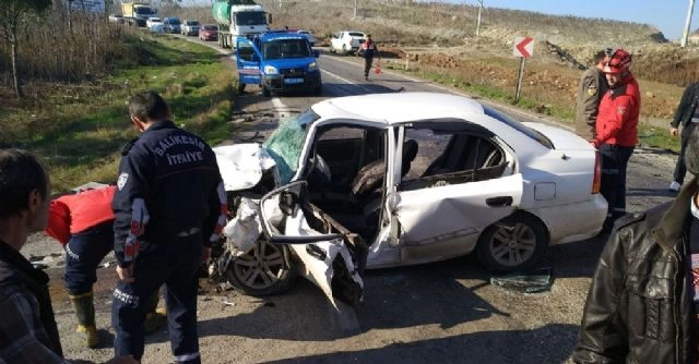Balıkesir'de meydana gelen trafik kazasında 1 kişi hayatını kaybetti, 4 kişi de yaralandı. Balıkesir - Savaştepe yolunda meydana gelen kazada, 35 VMA 90 plakalı araç ile 16 BRH 43 plakalı aracın çarpışması sonrası ortalık savaş alanına döndü. 4 kişinin yaralandığı kazada Mesut Anış hayatını kaybederken, olay yerine çok sayıda ambulans ve itfaiye ekibi gönderildi. İtfaiye ekipleri vatandaşları sıkıştıkları araçtan çıkartarak 112 ekiplerine teslim etti. Yaralılar Balıkesir Atatürk Devlet Hastanesi'ne kaldırılırken, kazayla alakalı tahkikat sürüyor.(Taşkın Sarıca /İHA)
