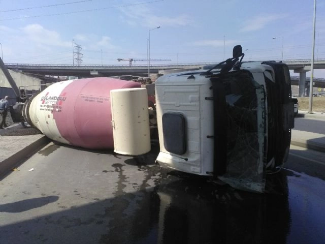 Başakşehir'de virajı alamayan beton mikseri yola devrildi. Kazada hafif yaralanan sürücü hastaneye kaldırılırken, yol trafiğe kapatıldı. Kaza, saat 15.00 sıralarında İkitelli Köprülü Kavşağı Bağcılar yönünde gerçekleşti. İddiaya göre, Kadir Mercan Demir idaresindeki 34 ZEM 65 plakalı beton mikseri, Başakşehir'den Bağcılar yönüne giderken İkitelli Köprülü Kavşağında virajı alamadı. Kontrolden çıkan 33 tonluk beton mikseri ilk önce trafik levhasına vurdu, ardından aydınlatma lambasının bulunduğu direğe çarparak yola devrildi. Kazayı gören vatandaşların ihbarı üzerine olay yerine itfaiye ve ambulans ekipleri sevk edildi. Yol trafiğe kapatılırken araçlar alternatif yollara sevk edildi. Beton mikseri devrildiği anda kafasından hafif yaralanan araç şoförü Ahmet Mercan Demir tedavisi yapılmak üzere en yakın hastaneye kaldırıldı. Olay yerine gelen İstanbul Büyükşehir Belediyesine bağlı çekicilerin kaldıramadığı aracı çekmek üzere vinç çağrıldı. Hafif yaralanan şoför Demir'in sağlık durumunun iyi olduğu öğrenildi.Kazanın yaşandığı sırada olay yerinde bulunan Mahmut Bakan, "Yan tarafta arsada duruyorduk. Bir anda bir ses geldi. Devrilirken bariyere vurunca durdu. Direk ambulansı aradım. Ambulansı aradıktan sonra itfaiyeyi aradım. Sıkışmış da olabilir diye. Arkadaşı gayet sağlıklı bir şekilde çıkardık. Hafif bir yarası vardı. Direğe çarptı ondan sonra durdu. Kayarak bariyere vurdu ve durdu. Başakşehir tarafından geliyordu. Direksiyon hakimiyetini kaybetti. Keskin bir viraj var burada. Direk yattı" ifadelerini kullandı.(Caner Sönmez / İHA)