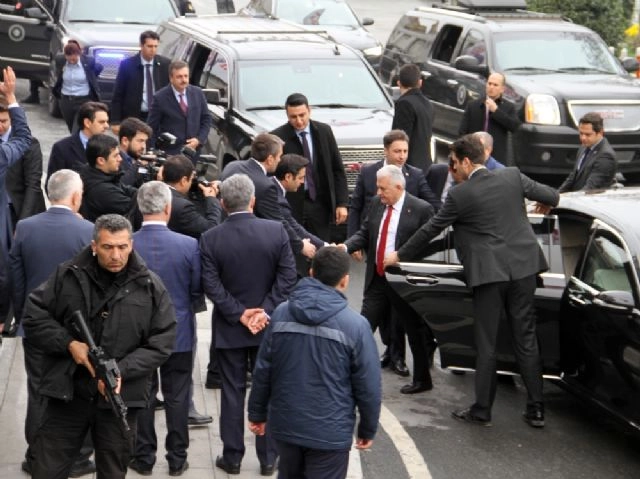 Başbakan Binali Yıldırım, ilçe ve belediye başkanları toplantısına katılmak üzere AK Parti İstanbul İl Başkanlığına geldi. Başbakan Binali Yıldırım, ilçe ve belediye başkanları toplantısına katılmak üzere saat 11.30 sıralarında AK Parti İstanbul İl Başkanlığına geldi. Başbakan Yıldırım'ı AK Parti Genel Başkan Yardımcıları, Erol Kaya, Fatih Şahin, Mustafa Ataş, AK Parti İstanbul İl Başkanı Dr. Selim Temurci, ilçe belediye başkanları ile il yürütme ve yönetim kurulu üyeleri karşıladı. Binanın çevresinde özel harekat polisleriyle yoğun güvenlik önlemi alınırken, Başbakan Yıldırım'ın katıldığı toplantının basına kapalı olduğu öğrenildi.(Doğan Can Cesur/İHA)