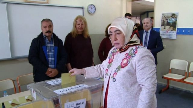 Başbakan Binali Yıldırım'ın eşi Semiha Yıldırım, oyunu Ankara'da kullandı.Başbakan Binali Yıldırım'ın eşi Semiha Yıldırım, Ankara Halide Edip Adıvar Ortaokulu 1235 numaralı sandıkta oyunu kullandı. (Enise Vural / İHA)