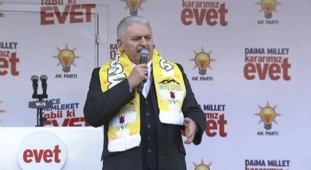 Başbakan Binali Yıldırım, terör örgütlerinin de referandumda hayır diyeceğini belirtti. Yıldırım, CHP ve HDP'ye yüklendi.Başbakan Binali Yıldırım, Muş'ta vatandaşlara hitap etti. Yıldırım, "Bunlar bedavacı. Bir yerden bir fırsat olsa da işin ucundan biz de tutsak diye hep fırsat kolluyorlar. Darbelerden medet umdular, kendilerine siyasi bir alan açtılar. Bunlar başka kim karşı ? HDP karşı. Bölücü PKK terör örgütünün adeta esiri haline gelmiş bir partiden bahsediyoruz. Sırtını Kandil'e yaslamış HDP karşı olsa ne olur, olmasa ne olur ?" dedi.Başbakan Yıldırım, sözlerine şu şekilde devam etti:"Terör örgütünün maskesinin düşürdük. FETÖ ile PKK'nın kardeş olduğunu 15 Temmuz gecesi hep beraber gördük. Bunlar hep birlikte hareket ediyor. Bunların ipi dışarıda aynı merkezin elinde."