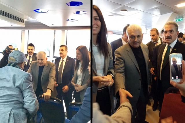 Başbakan Binali Yıldırım, Yalova programı sonrası İstanbul'a feribotla döndü. Cep telefonuyla görüntülenen Yıldırım, feribotta vatandaşlarla sohbet etti. Başbakan Binali Yıldırım Ak Parti Yalova Merkez İlçe Kongresi sonrası İstanbul'a İDO'ya ait feribotla döndü. Başbakan Binali Yıldırım, feribotta bulunan vatandaşlarla sohbet etti. O anlar ise vatandaşlar tarafından cep telefonuyla kaydedildi.