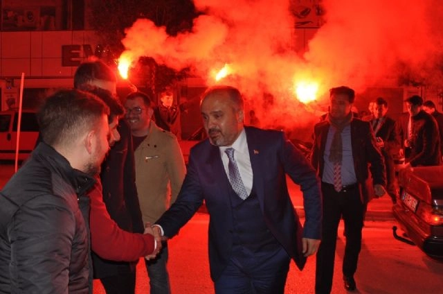 Bursa'da Recep Altepe'nin istifasının ardından meclis üyelerinin oylarıyla Büyükşehir Belediye Başkanlığı görevine seçilen Alinur Aktaş, memleketi İnegöl'de coşkuluyla karşılandı.