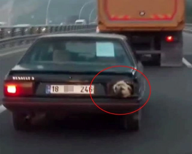Ankara'da bir otomobilin bagajından kafasını çıkaran köpek, görenleri hayrete düşürdü. Akşam saatlerinde Protokol Yolu üzerinden şehir merkezi istikametinde seyreden otomobil, herkesi şaşırttı. Otomobilin bagajında taşınan köpeğin hava alabilmesi için stop lambasının söküldüğü görüldü. Buradan kafasını dışarı çıkaran köpekse, etrafı izleyerek yolculuk yaptı.