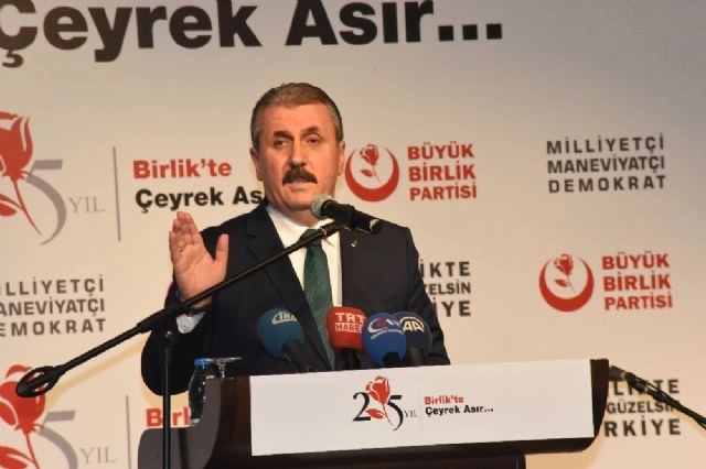 Büyük Birlik Partisi (BBP), kuruluşunun 25. yılını Ankara'da kutladı. Programda konuşan BBP Genel Başkanı Mustafa Destici, 'Türkiye kendi coğrafyasında her türlü operasyonu yapar. Bir sonraki adım da Mümbiç'e olmalıdır' dedi.